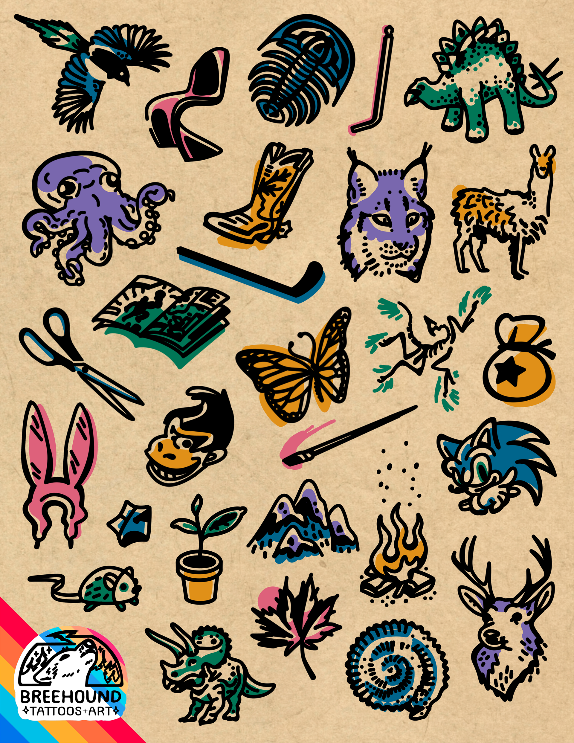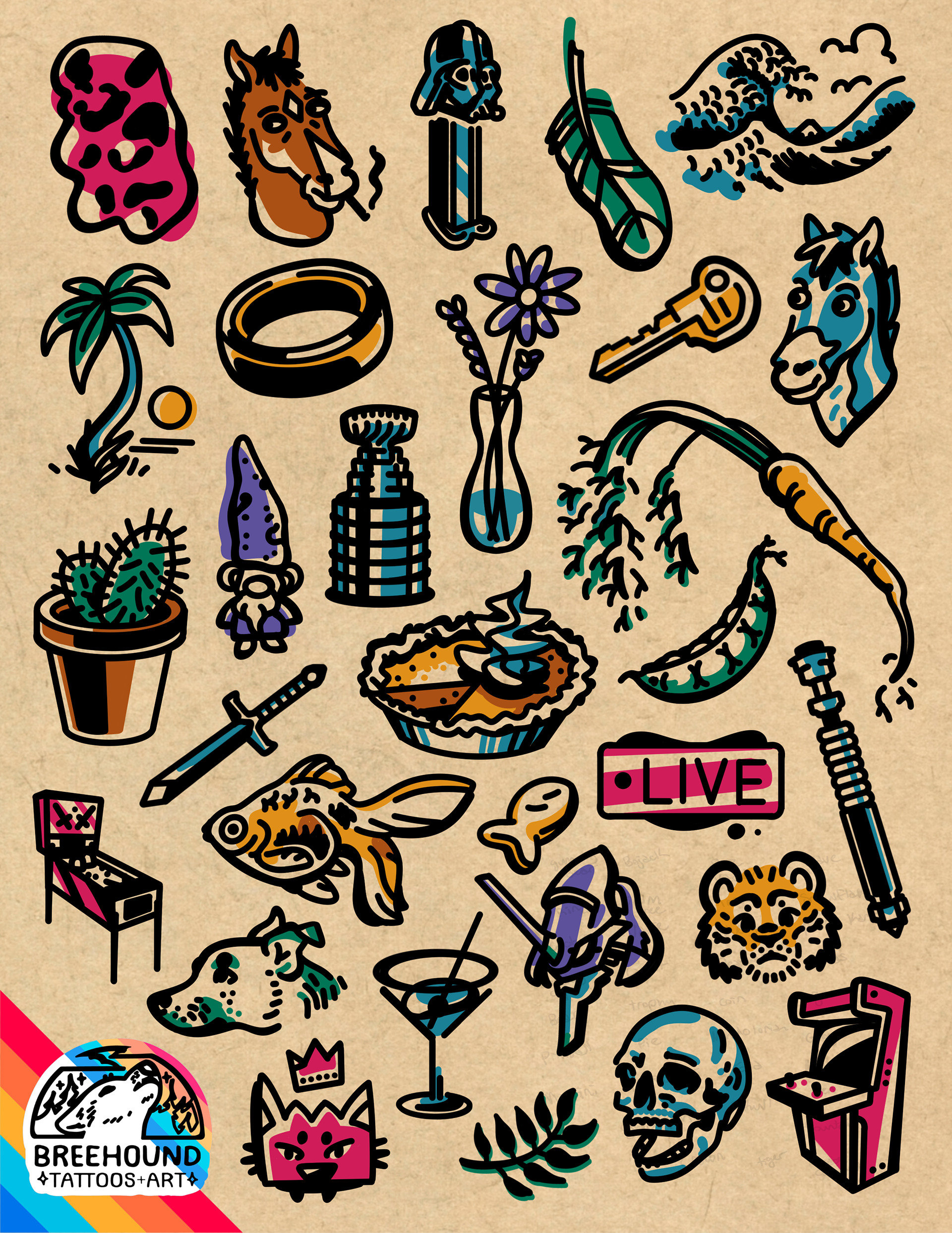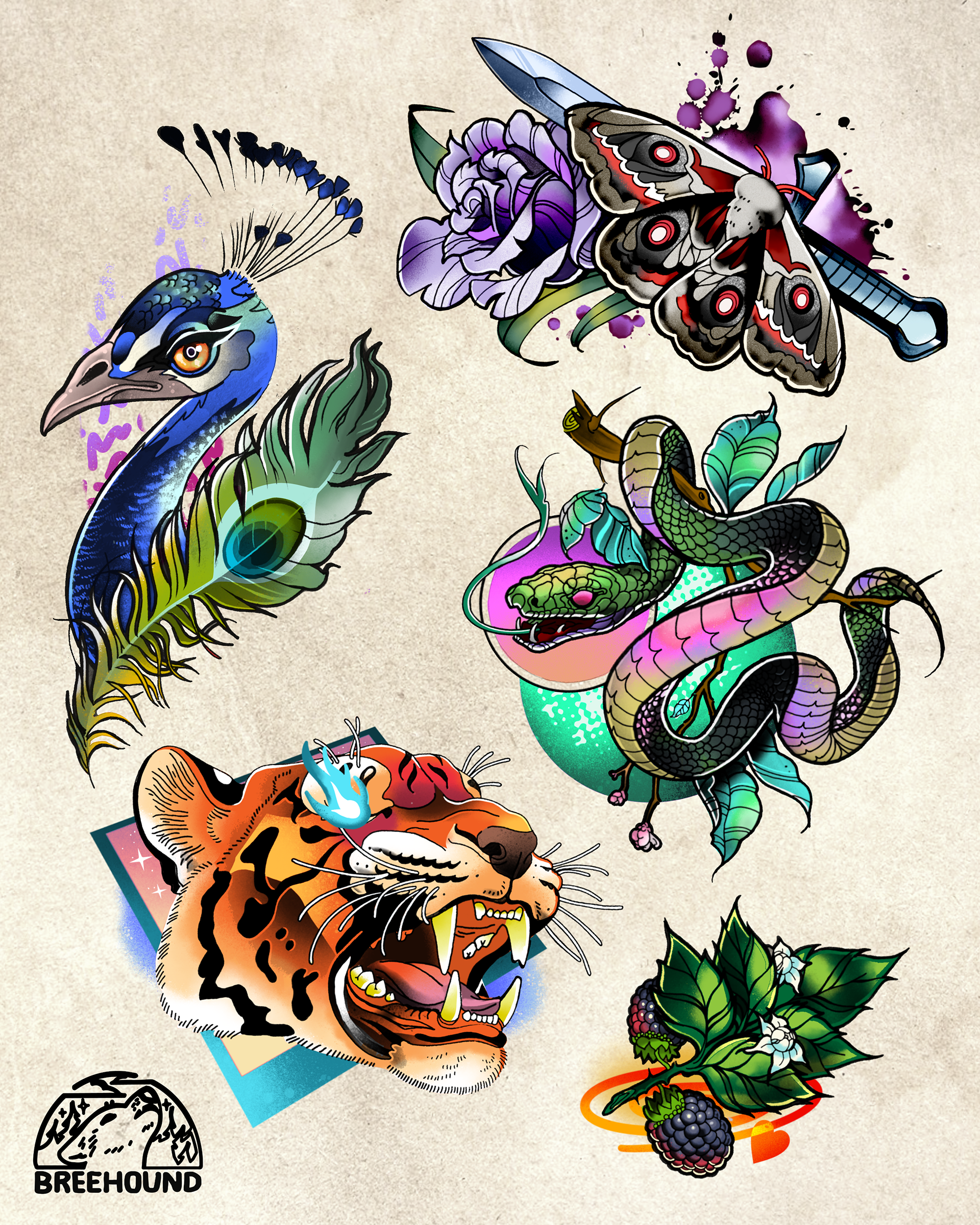 Premade designs that are available to be tattooed! Reach out to me for an estimate. Current rates are 125$ an hour.
